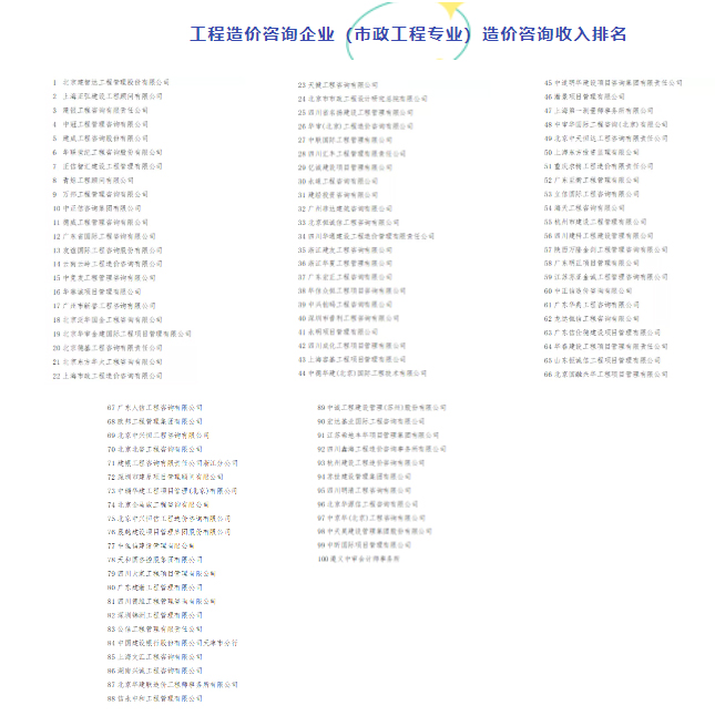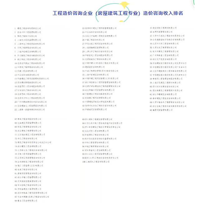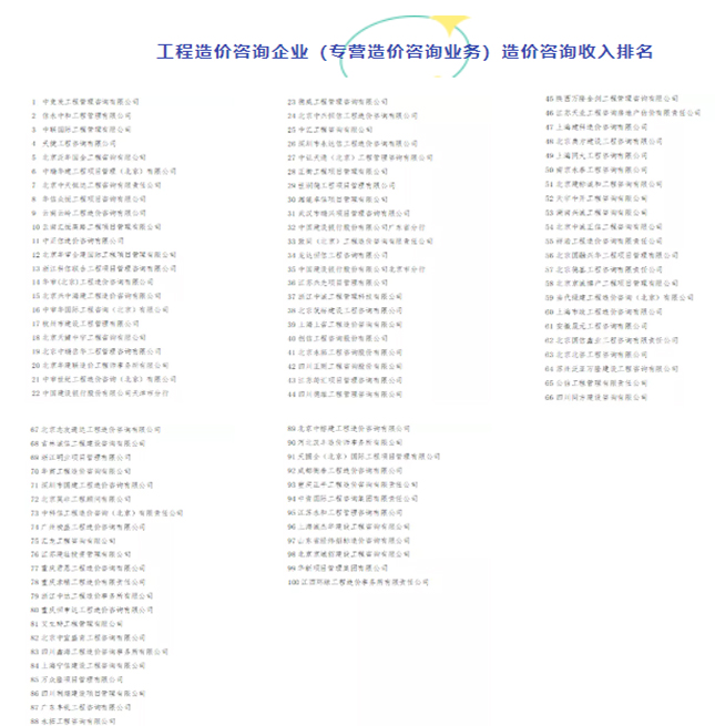 近日,中國(guó)建設(shè)工程造價(jià)管理協(xié)會(huì)公示《2020年工程造價(jià)咨詢企業(yè)造價(jià)咨詢收入排名》。