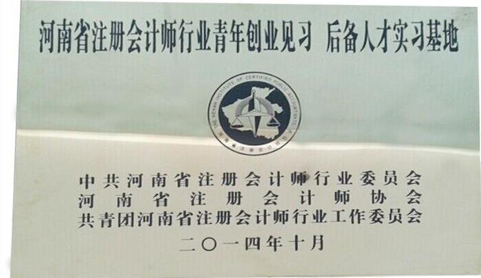 根據(jù)《河南省注冊會計師協(xié)會關(guān)于注冊會計師培養(yǎng)實習基地建設管理辦法》和《河南省注冊會計師協(xié)會關(guān)于建立“注冊會計師行業(yè)青年就業(yè)創(chuàng)業(yè)見習基地”的通知》,在省會計師協(xié)會的積極協(xié)調(diào)下,通過我所的積極努力,獲得了為河南大學和河南科技大學財會類學生提供實習基地的機會,充分體現(xiàn)我所在開拓大學畢業(yè)生就業(yè)機會方面所做的努力,我們將充分發(fā)揮基地建設作用,加強與基地院校合作,努力提升行業(yè)對青年學生的吸引力,為我省注冊會計師行業(yè)的健康持續(xù)發(fā)展培養(yǎng)儲備后備力量。
