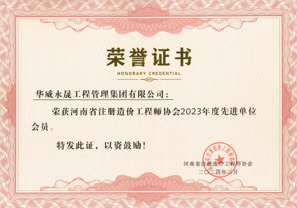 河南省注冊造價(jià)工程師協(xié)會“2023年度先進(jìn)單位會員